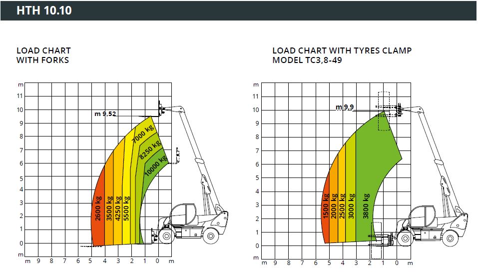 The HTH 10.10 telescopic handler is ideal for moving large, bulky loads in complete safety. Able to lift up to 10 tonnes, it is compatible with a wide range of accessories, making it extremely versatile. Equipped with an RFID system which provides automatic recognition of the various attachments used, this telescopic handler is able to meet a wide range of applications in heavy industry. Its four-wheel drive system, three maneuvering modes and high ground clearance makes it highly maneuverable on all terrain types.