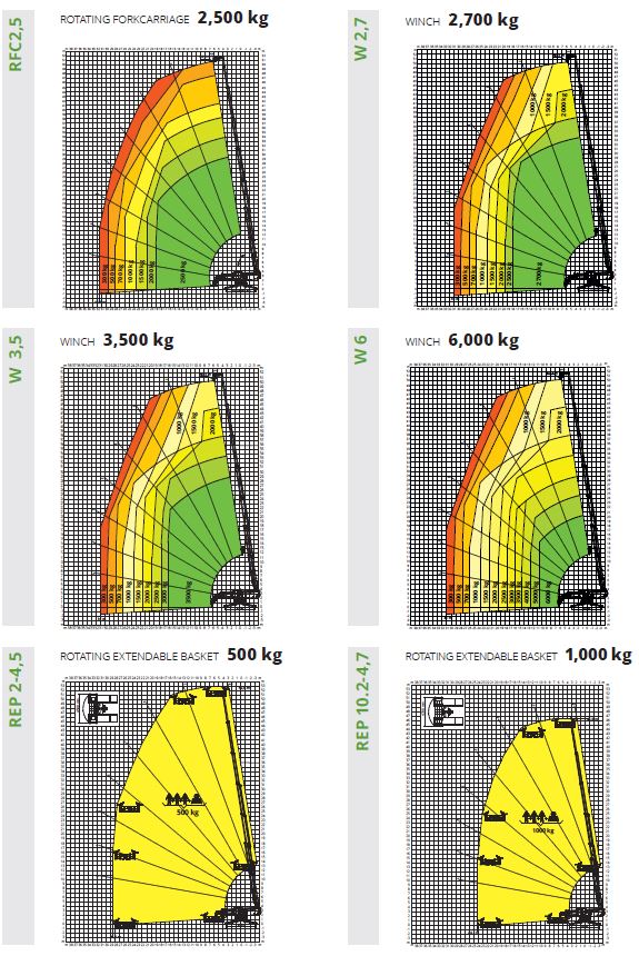 The RTH 6.51 is the highest rotating telescopic handler in the world. It achieves a lifting height of 51 m, with a maximum load capacity of 6 tonnes. It is the perfect solution for all construction or industrial sites requiring best-in-class reach and lifting capacities. The inclination corrector and scissor stabilisers with large support feet offer excellent stability under all circumstances, guaranteeing perfect ground holding on all terrain in order to ensure maximum operator safety. The dual-extension scissor stabilisers are ideal even with limited space available; even when it is only partially stabilised, the machine is programmed to provide the best possible load chart on each side. When the stabilisers are fully extended, on the other hand, they guarantee maximum machine performance over 360° as they are able to work over a very wide stabilisation base. This model allows the same attachment to be used in two different ways: strength mode M2 and stability mode M1. The first allows very heavy loads to be lifted, but with a more limited extension. The second mode, on the other hand, allows for greater extension, but with more limited loads. It is compatible with a huge range of accessories, thanks also to the RFID system which provides automatic recognition and creation of the dynamic load charts; this telescopic handler is able to meet a wide range of applications in construction and industry.
